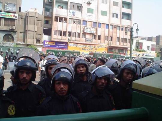 They surround us with amn markazy in the square at the beginning of Nubar st. Everyone is ok, but Dr. Nabil was beaten very cruelly and he is very tired. Some of the police in regular clothes stand with us in the circle arguing about what we did and that we should have left from another street like the rest of our colleagues, they talked about democracy and how we couldn't have done anything of this sort 20 years ago, they are here to protect us, and the persons who stole the cameras were thieves though Mostafa said that the guy who stole his camera had a walkie talkie..I ask him: "If you are here to protect us why don't you go arrest the thieves??" but he never answers me.